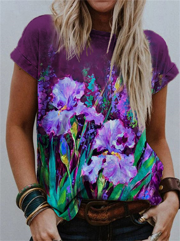 Elegant Purple Irises Art Crew Neck T Shirt