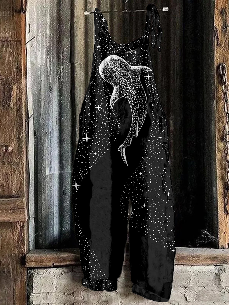 Starry Whale Art Print Loose Fit Cozy Jumpsuit
