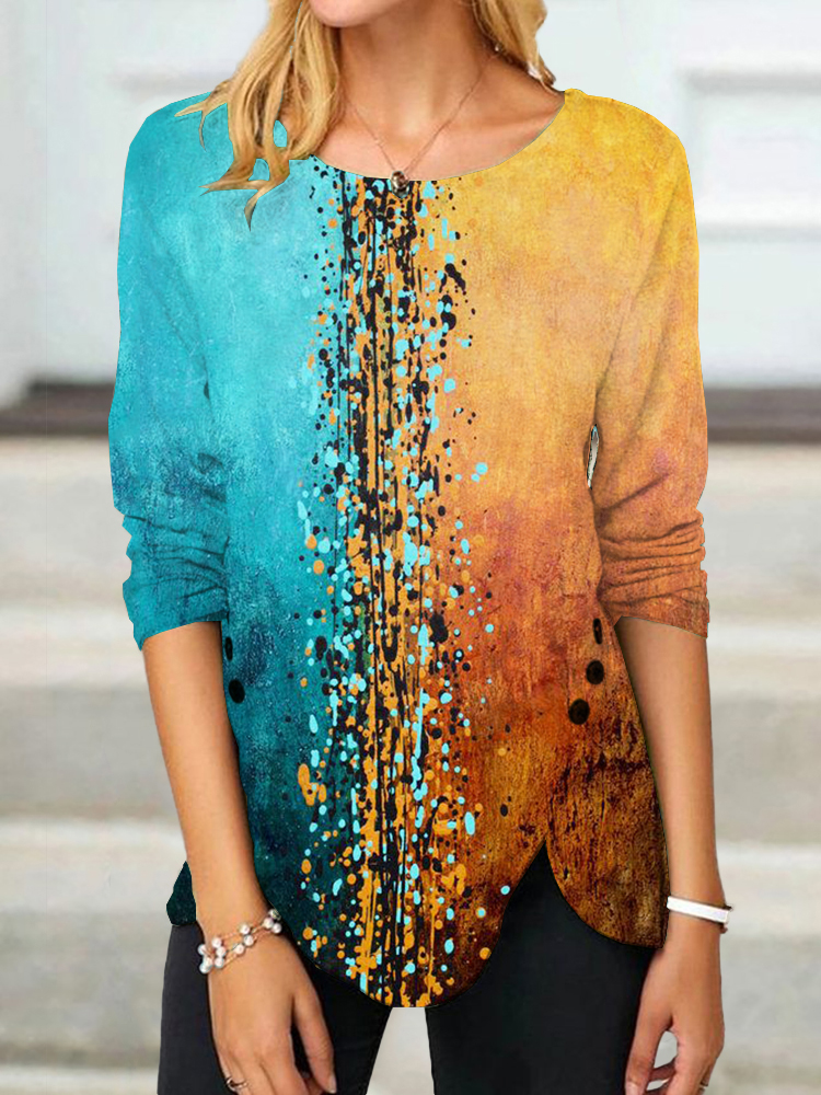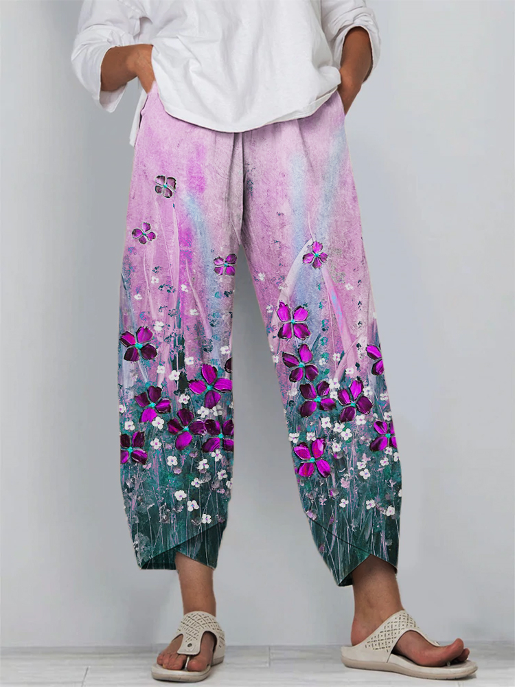 Abstract Art High Waist Pocket Wide Leg Casual Pants