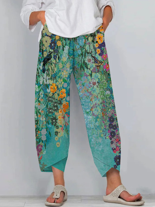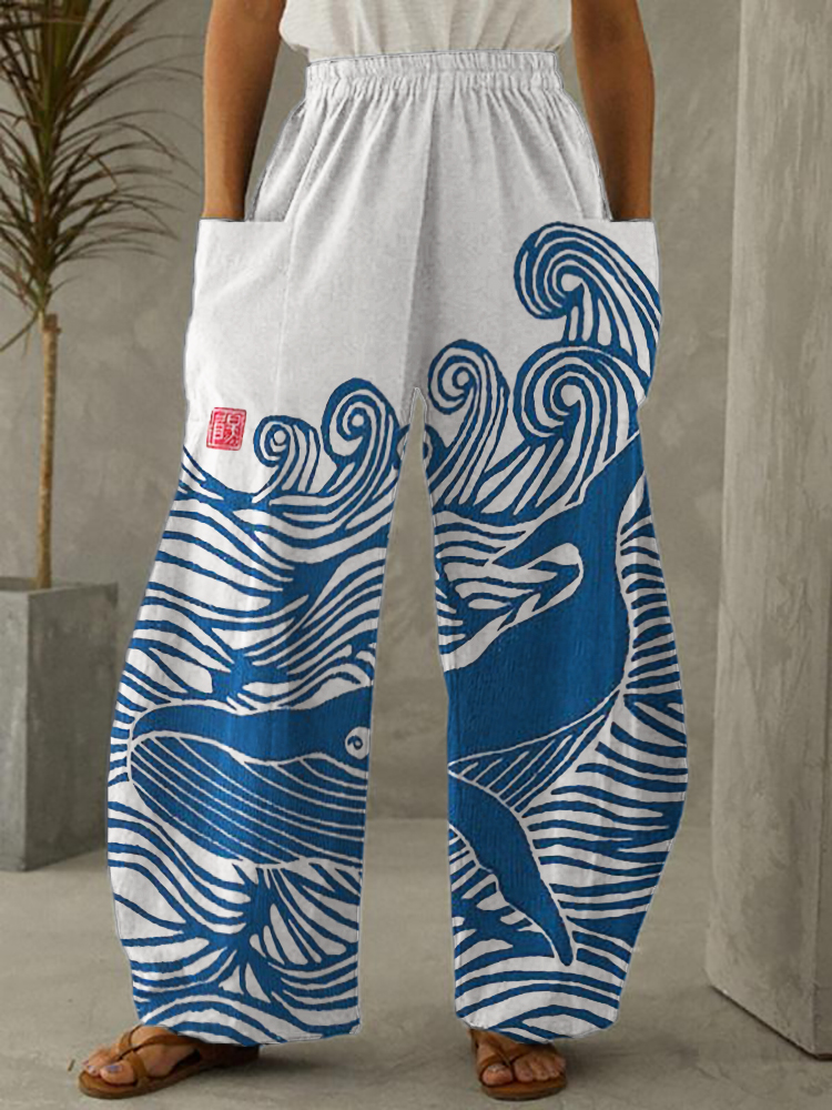 Whale & Waves Japanese Lino Art Wide Leg Pants