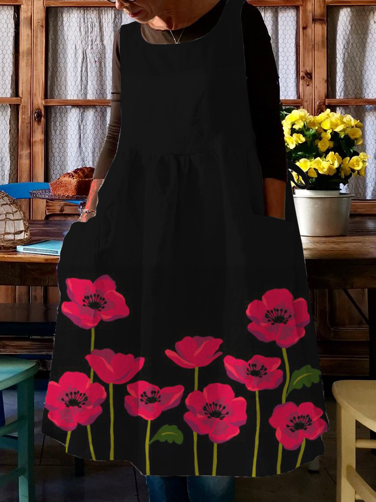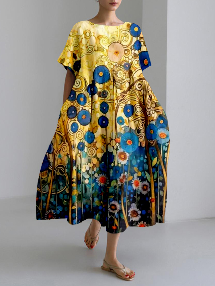 Ukraine Floral Art Painting Linen Blend Maxi Dress