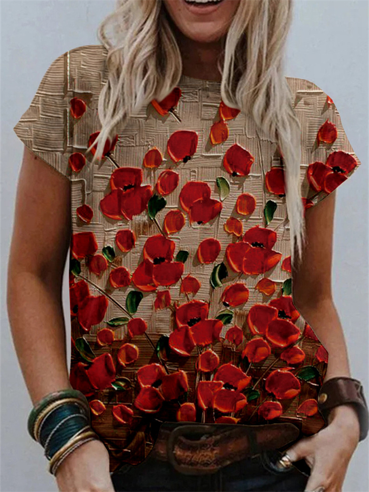 Hollyhocks Painting Art High Neck Bat Sleeve T Shirt