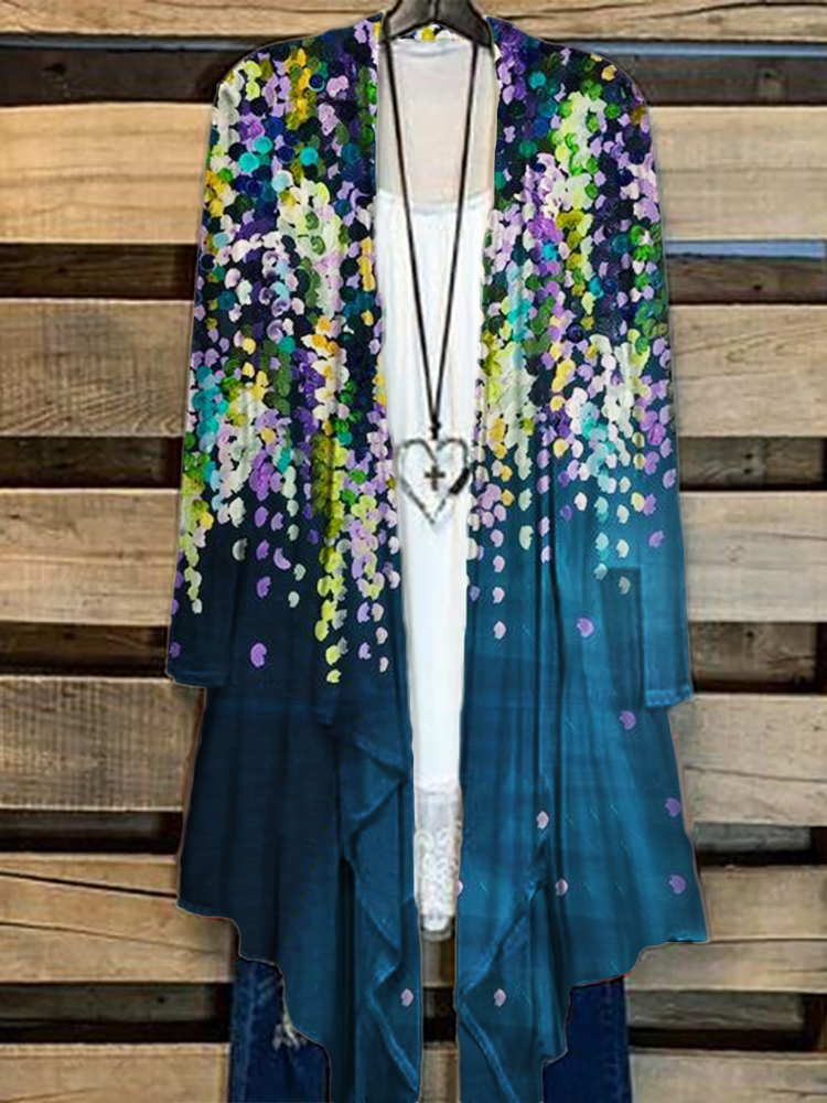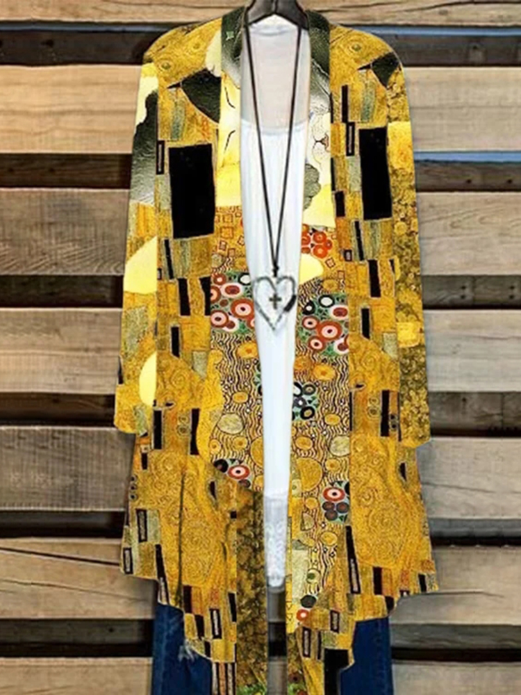 Gustav Klimt Oil Painting Flower Print Casual Cardigan