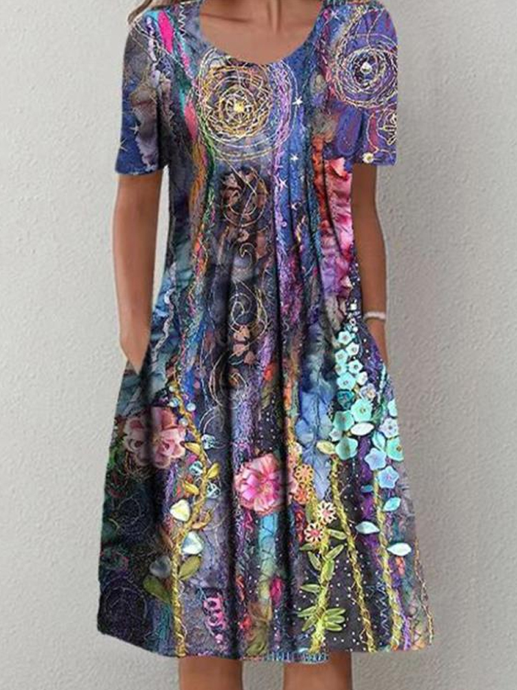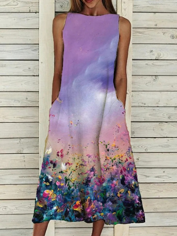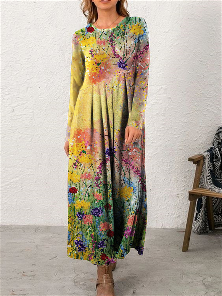 Flowers Oil Painting Art Pleated Cozy Maxi Dress