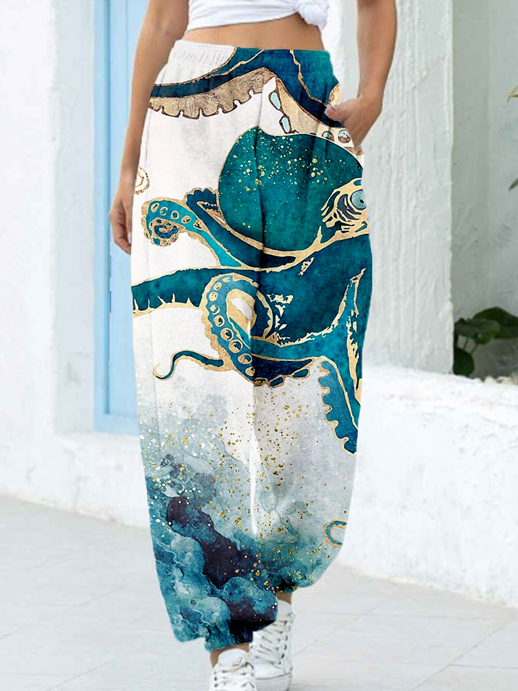 Psychedelic Seascape Octopus Art Casual Sweatpants