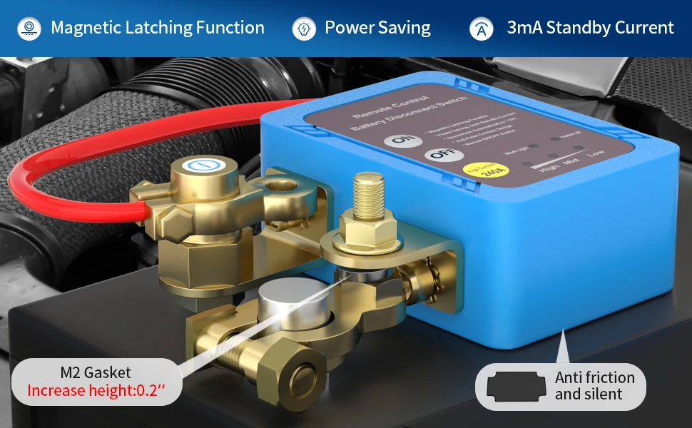 *【Specifications】- Battery disconnect switch rated current: 240A, rated voltage: 12V, standby power consumption: 3mA, power-off threshold: 11.8V±0.2V, instantaneous current: 500A. *【Magnetic Latching Function】- This kill switch for car uses a new type of relay that controls circuit disconnection and cut-off by magnetic principle, with a standby current of 3mA, which is more energy-saving. *【Automatic Cut Off】- If the voltage is lower than 11.8V, the remote kill switch will automatically cut off the power supply after 120s to save electricity, if the voltage is higher than 13.2V, the remote control will be disabled to prevent accidental action to shut off the power while driving, and the power supply can only be controlled by the button on the switch. *【Easy Installation】- The power shut off switch uses a negative connection to ensure stable performance. Please remember to turn off the power before installation. *【Protect the Battery】- Using this car battery kill switch can avoid power consumption due to long-term parking, good point of electronic equipment, line aging, forgetting to turn off the light, etc. It can effectively protect and prolong the life of car battery. It can effectively protect and prolong the life of car battery.