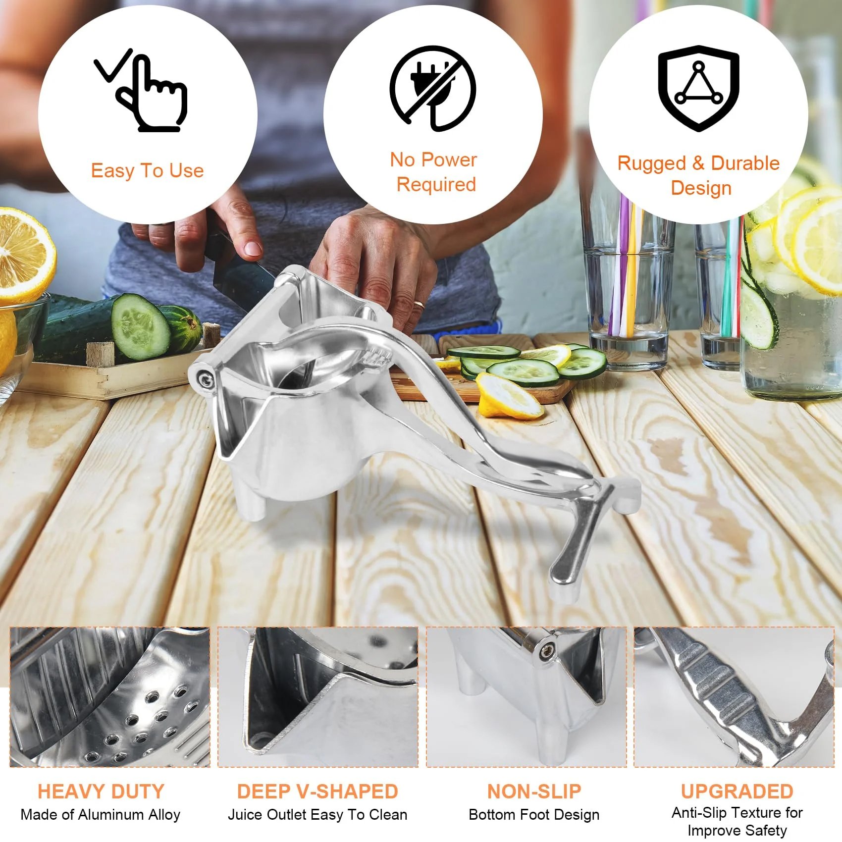 Experience up to 40% more juice extraction compared to traditional methods! 💪 The ergonomic handle design gives you perfect leverage to squeeze every last drop from fruits and vegetables – no waste, just pure liquid gold. 🥤✨
