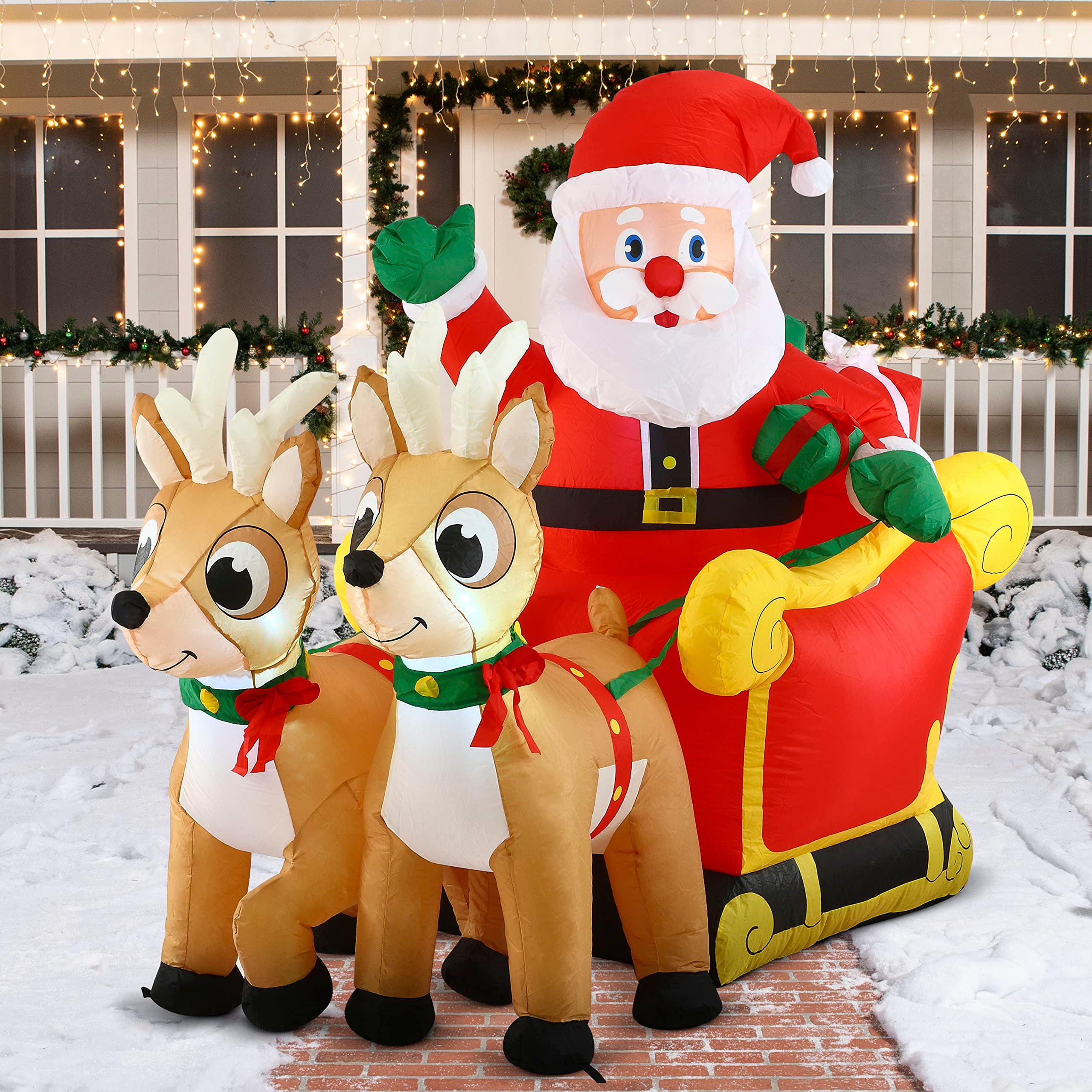 Our 6 Feet Tall Santa Deer Sleigh Ride Inflatable includes an extended cord, ground stakes, fastened ropes, built-in sandbags, and a plug with UL certification. Bright built-in LED lights. Light up in the evening for the best attraction to neighbors and guests. Premium Quality. Very easy and safe for kids to help decorate! Plug it in, everything pops up in a minute! Perfect for pop-up Christmas deer sleigh decor, Christmas outdoor yard garden decorations, Christmas event decoration, Holiday blow-ups, Christmas Eve night decor. Ideal for winter decoration, Christmas night event, cute inflatables, sleigh bell decor, Winter Paradise themed party, party favor Christmas prop, classroom decorations and more. Item #:30089